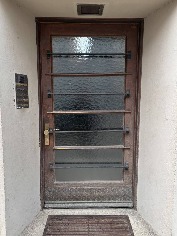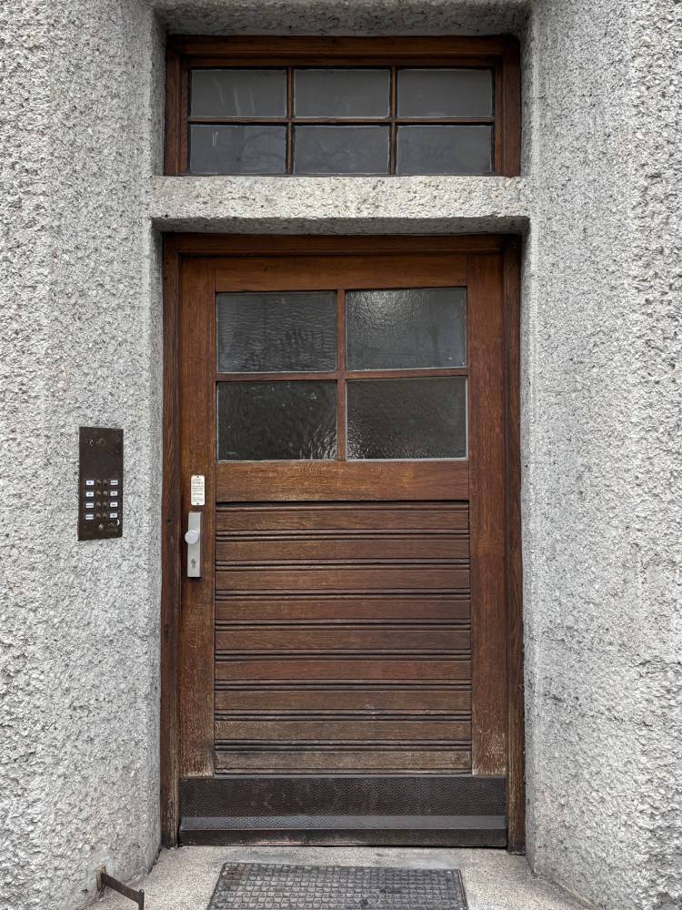 Wood was by far the dominant material, especially for residential buildings, due to Germany’s strong forestry resources, which made it both cheap and practical. While front doors had traditionally been made of wood, they became a lot less ornate in the 1920s. Flat surfaces replaced heavy ornamentation, and horizontal and vertical slats added structure and reinforcement.